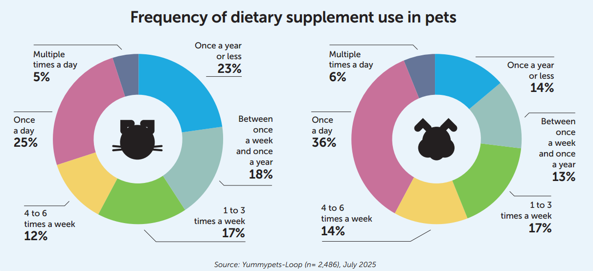 A new survey by Yummypets, powered by Loop, among some 2,500 pet owners in France, the UK, the US, Canada, Brazil and Mexico reveals that just 30% of cats and 42% of dogs are given dietary supplements every day.
