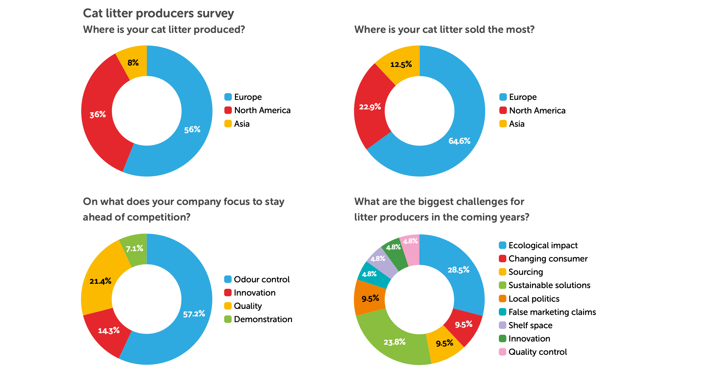 But not only China is developing rapidly in terms of sustainability. Our survey results show that 60% of the respondents see ‘eco-friendliness’ as their speciality. And some of them have introduced sustainability plans to lower their carbon footprint. Reduce, reuse and recycle are the three key terms. Reduction of waste, reuse of raw materials and energy, and the recyclability of packaging materials all contribute to more sustainably produced cat litter.