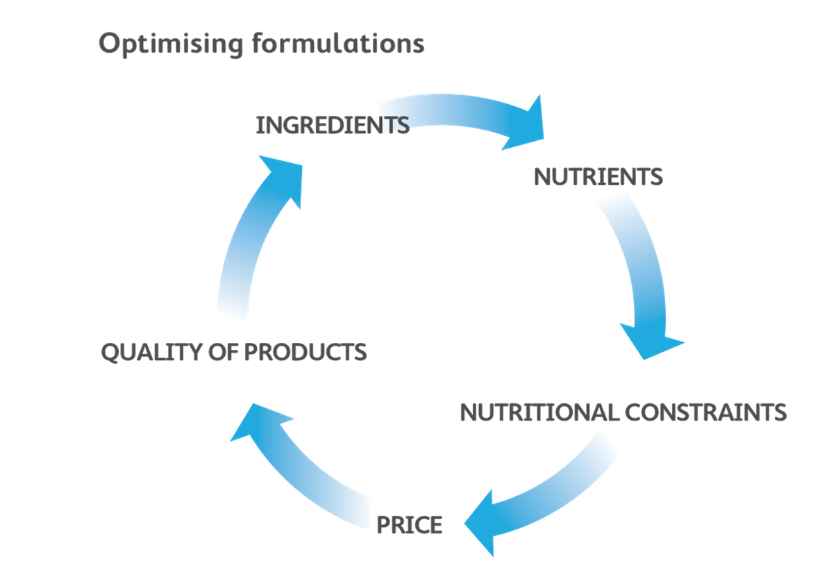 It is also essential to optimise nutrients and nutritional constraints. Ingredients comprise nutrients used in formulations to ensure optimum balance and nutritional adequacy for dogs and cats throughout their life stages, from kitten/puppy, to adult and senior. Ingredient digestibility and nutrient bioavailability are also important parameters.