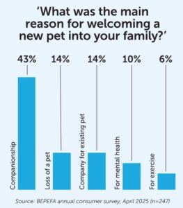 There has been steady growth in recent years for two other reasons the respondents give. Some get a new pet for their mental health (10%, up from 6% in 2024) or for exercise purposes (6%, up from 4% the previous year). This is perhaps a sign of changes in society regarding attitudes to both mental and physical health.