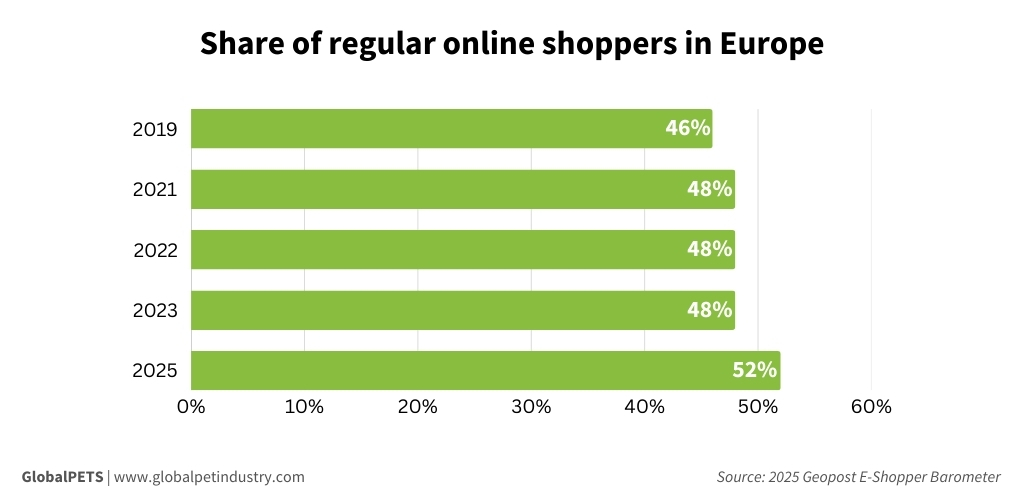 Europeans are buying items online more often and across a wider range of product categories, including pet supplies.