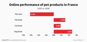 Online sales of pet care and food products hit €1.87 billion ($2.2B) in France in 2025, according to data from market research platform NielsenIQ.