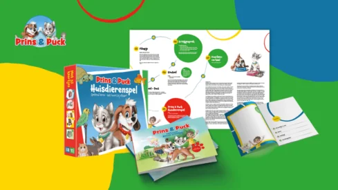 The ‘Prins & Puck’ education program uses the characters Prins the dog, Puck the cat and their young owners Sem and Rose to familiarize children from four to eight years old with the basics of pet care in a playful way.