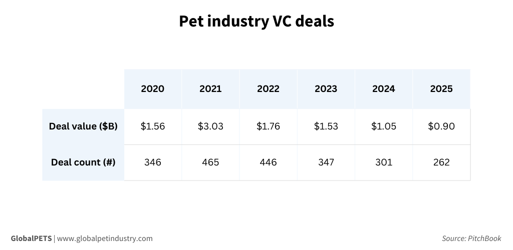 The global pet industry attracted $899.5 million (€755M) in venture capital (VC) investments and acquisitions in 2025, according to PitchBook, which recorded 262 deals.