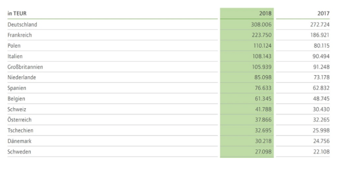 For an overview of the turnover per country see illustration