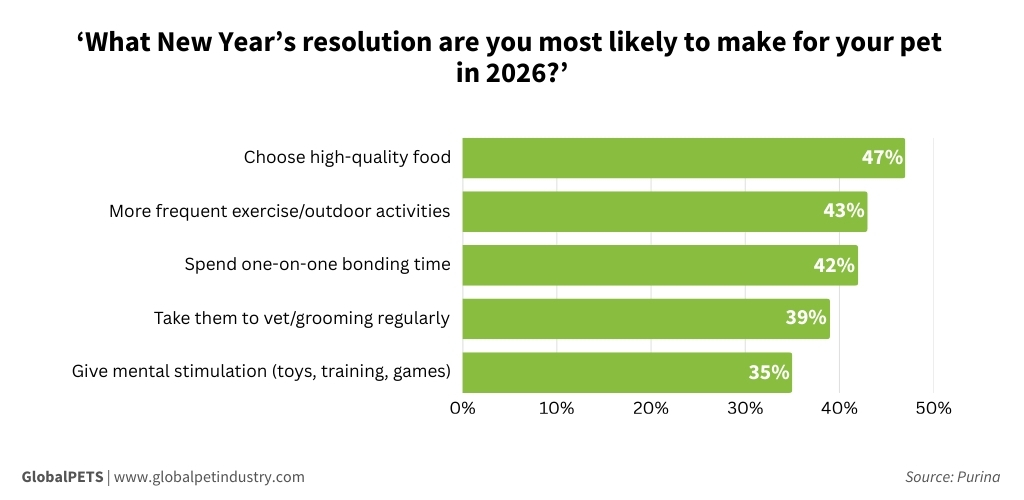 For instance, 47% say they want to improve their pet’s nutrition by choosing higher-quality food, while 43% plan to commit to more frequent exercise routines.