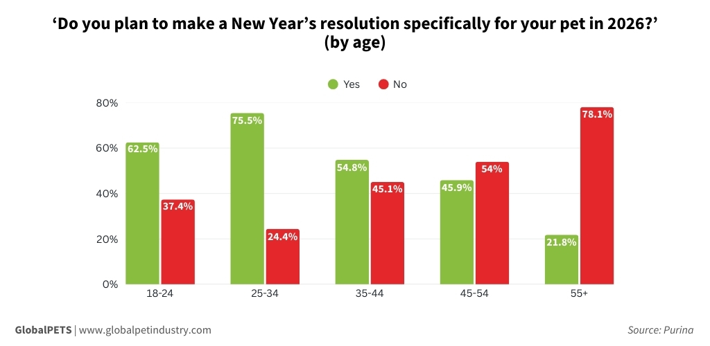 Wellness and health are the top priorities for 64% of owners in 2026, a figure higher than in previous years. Pet parents aged 25 to 34 years old led this sentiment at 89%, followed by 18 to 24-year-olds (79%) and 35 to 44-year-olds (70%).
