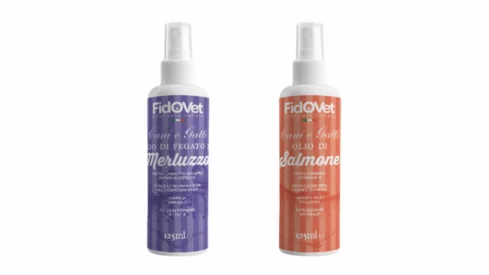 FidOVet presents two innovative SPRAY OILS, fast and easy-to-use. Thanks to the high content of Omega-3 and Omega-6 polyunsaturated fatty acids, FidOVet Norwegian Salmon Oil helps support shiny and healthy skin and coat, while FidOVet Cod Liver Oil contains a high amount of fat-soluble vitamin A and vitamin D3 and vitamin E, which reduces joints inflammations. They both also positively help the growth of dogs and cats. FidOVet SPRAY OILS are complementary food that can be added to the daily dry or wet dog food ration, improving palatability, so they are particularly suited for cats and smaller dogs with fussy appetites.