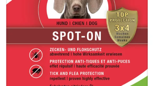 It is a safe, preventive, highly effective repellent. A field study confirms repelling action for 4 weeks against ticks and fleas, 91% of ticks and 99% fleas proven to be gone in week 2.