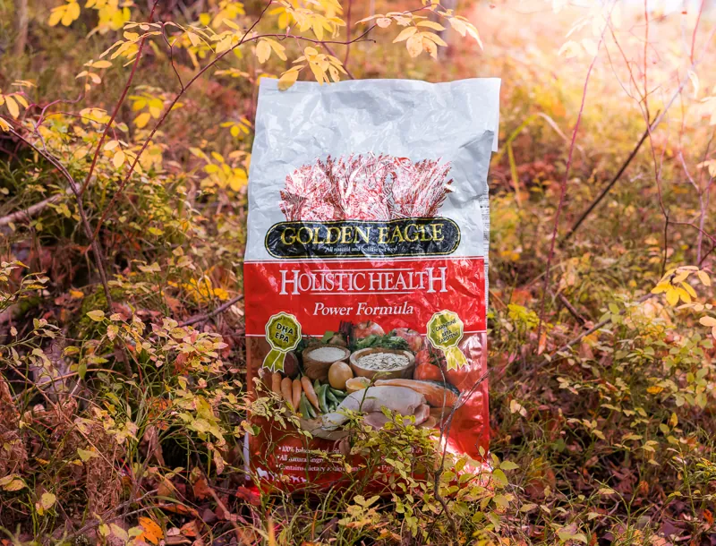 Golden Eagle Holistic Power Formula is designed for very active dogs. Dogs who requirer high amounts of protein and energy, such as sled dogs, hunting dogs, pregnant or lactating bitches.