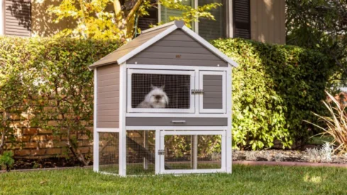 All New Age Pet outdoor products are backed by an unrivaled 10-year limited manufacturer’s warranty. This hutch features 2 levels of living space for your pet and an easy to clean, ECOFLEX® pull out tray. The top level has 2 doors, one opens to the main living space while the other allows access to the denning space, the ramp offers easy access to the bottom level, which is open to the ground so your pet has access to a shaded & grassy area.
