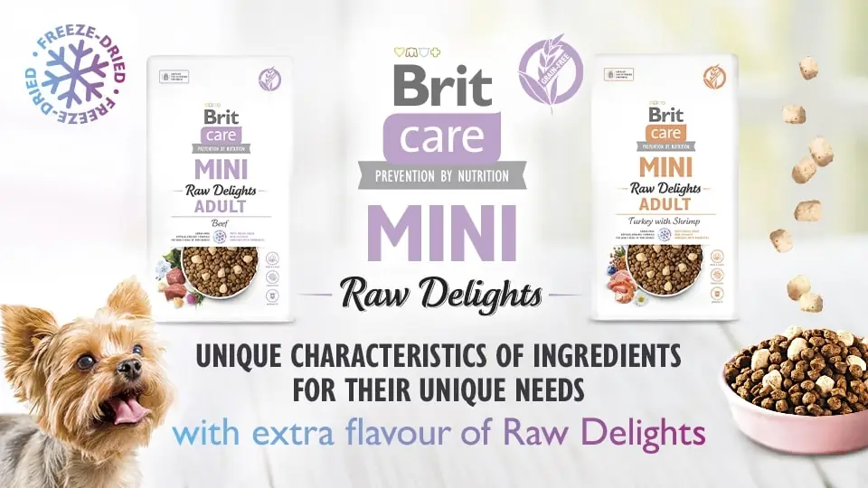 Carefully crafted kibbles that not only meet the nutritional needs of small breeds but also satisfy even the most demanding canine palates? That’s Brit Care Mini Raw Delights. This innovative range of kibbles is designed specifically for mini breeds with unique nutritional needs and tastes. The combination of fresh meat kibbles and freeze-dried meat pieces offers an extra dose of natural flavor and aroma, allowing dogs to enjoy every bite with joy.