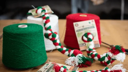 Wool yarns and fabrics of the finest quality, leftovers from industrial textile production, are transformed into a range of seven sustainable high-quality knotted rope toys. In various sizes and shapes, to fit any breed and temper.