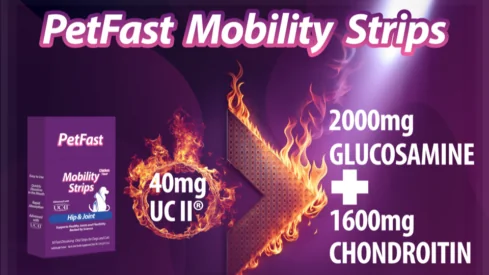 Supported by clinical studies, PetFast Mobility Strips advanced with UC-II® surpass glucosamine and chondroitin.