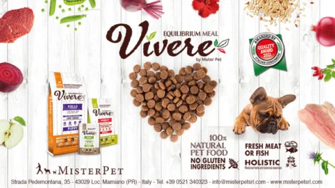 Vivere respects the natural diet of dogs because is made with plenty of fresh meat and a total amount of 60% Animal ingredients (of which 49% Meat content). Vivere has been developed using the old-fashioned method of including functional ingredients that can contribute to the general physical wellbeing: medicinal herbs, whose essences and active compounds may help the functions of specific organs. Omega 3, helpful for skin wellness, a glossy coat and for the blood circulatory system. Fruit, rich in vitamins and minerals, as a source of natural anti-oxidants that help to contrast the ageing of tissues. Prebiotics, that promote the balance of intestinal flora.